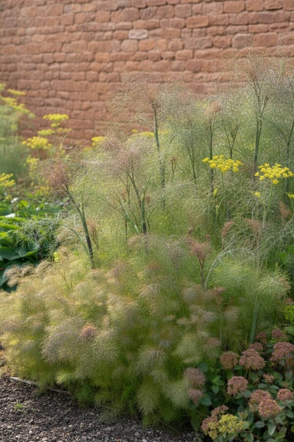 Bronzefennikel, kendt som Foeniculum vulgare 'Giant Bronze', er en flerårig plante med en oprejst vækstform og dekorativt bronsfarvet løv. Denne plante er ikke kun attraktiv for insekter, men dens aromatiske blade tilføjer også en eksotisk flair til haven. Bronzefennikel trives bedst i solrige forhold og kan vokse i alle jordtyper, så længe de er godt drænede.