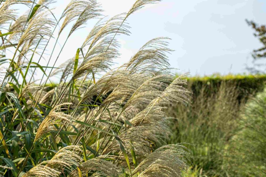 Miscanthus giganteus, kendt som elefantgræs, er et imponerende prydgræs, der kan nå en højde på op til 3 meter. Det tiltrækker fugle med sine smukke blade og hvide blomsterplumer, der blomstrer fra august til oktober. Denne plante trives bedst i sol eller halvskygge og kræver veldrænet jord.