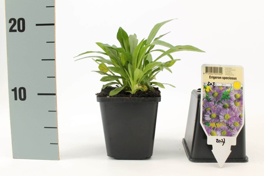Når der plantes Erigeron speciosus 'Superbus', er det afgørende at sikre, at jorden er veldrænet for at fremme sund vækst. Denne art trives i både sol og delvis skygge, og den oprejste til buskede vækstform bidrager til en charmerende dynamik i kant- og gruppeplantninger. Da planten leveres i potter, er den let at etablere i haven, og dens gennemsnitlige vandbehov betyder, at den ikke kræver overdreven vedligeholdelse. Planten vil nyde godt af regelmæssig vanding, især i vækstperioderne, for at sikre en lang og rig blomstringsperiode fra juni til september.