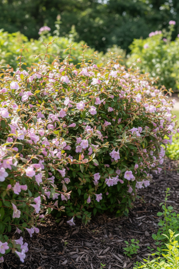 Eine Abelia grandiflora 'Pinky Bell's' Strauch gießen