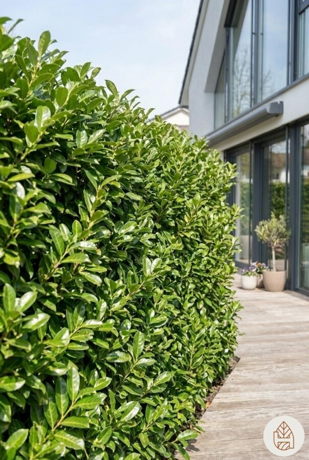 Prunus laurocerasus 'Novita' Hecke ist eine beliebte Wahl für Gärten. Diese Pflanze gehört zum Prunus -Geschlecht und ist bekannt als Kirschlorbeer 'Novita'. Sie ist eine immergrüne Heckenpflanze, die schnell wächst und Vögel durch ihre Beeren anzieht. Die Prunus laurocerasus 'Novita' hat ein zierliches Erscheinungsbild, das jedem Garten Eleganz verleiht. Diese Hecke bietet das ganze Jahr über Sichtschutz und ist ideal für hohe Hecken. Sie kann als Solitär oder in Gruppen gepflanzt werden, um eine dichte Hecke zu bilden. Die Pflege ist einfach, und sie ist eine ausgezeichnete Wahl für alle, die eine pflegeleichte und attraktive Heckenpflanze suchen.