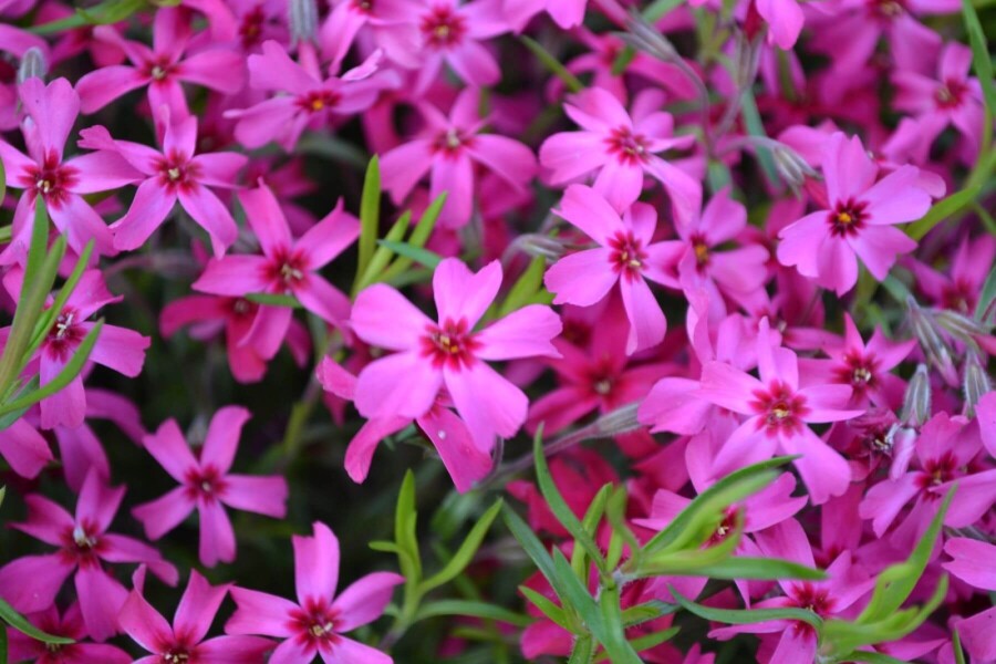 Het aanplanten van een Phlox subulata 'Scarlet Flame'