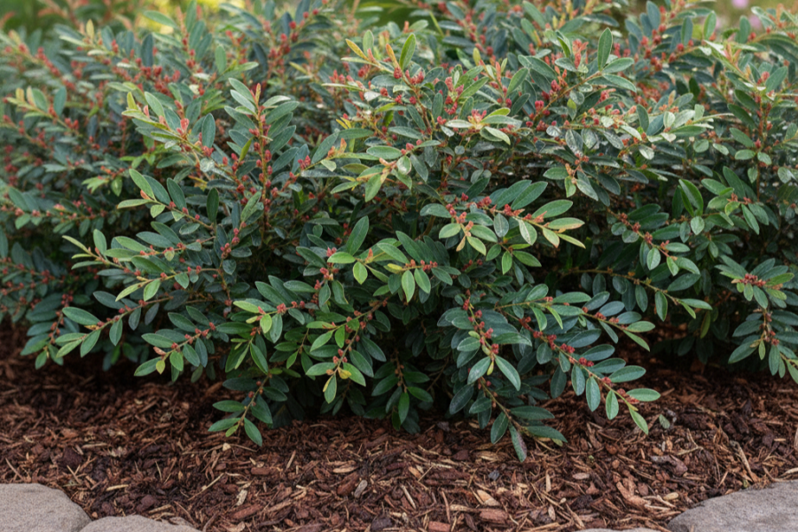 Eine Distylium 'Blue Cascade' Strauch gießen