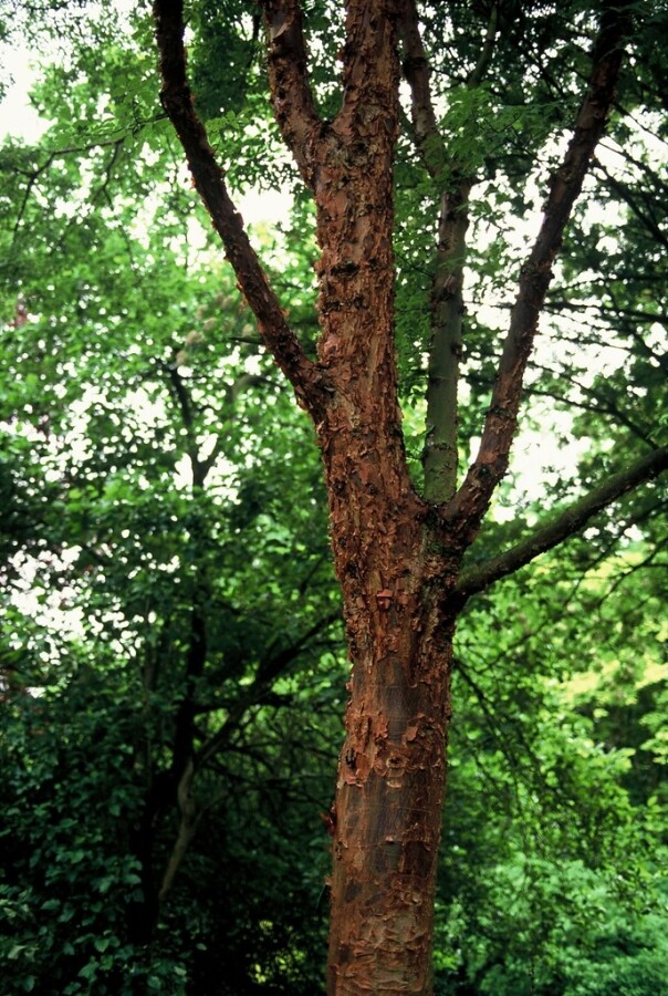 Der Acer griseum benötigt mäßige Wassergaben. Es ist wichtig, die Erde regelmäßig zu überprüfen, um festzustellen, ob die Pflanze Wasser benötigt. Eine gründliche Bewässerung ist effektiver als tägliches, oberflächliches Gießen. Besonders in trockenen, sonnigen Perioden sollte darauf geachtet werden, dass die Pflanze ausreichend Wasser erhält. Der beste Zeitpunkt zum Gießen ist früh morgens oder spät abends, um die Verdunstung zu minimieren. Regenwasser kann ebenfalls verwendet werden. Überschüssiges Wasser muss abfließen können, um Staunässe zu vermeiden. Tropfschläuche sind erst nach vollständiger Verwurzelung der Pflanze effektiv. Acer griseum ist nicht besonders trockenheitsresistent, daher ist regelmäßige Bewässerung wichtig.
