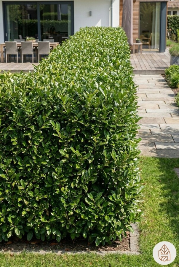 Prunus laurocerasus 'Rotundifolia' Hecke ist eine beliebte Wahl für Gärten. Diese Pflanze gehört zum Prunus -Geschlecht und ist bekannt für ihren schnellen Wuchs und ihre immergrünen Blätter. Der Kirschlorbeer 'Rotundifolia' ist ideal als Hecke, da er schnell blickdicht wird und somit Privatsphäre bietet. Diese Heckenpflanze ist perfekt für hohe Hecken geeignet und kann als Solitär oder in Gruppen gepflanzt werden. Die Prunus laurocerasus rotundifolia ist eine ausgezeichnete Wahl für jeden Garten, der eine dichte und grüne Hecke benötigt. Das Pflanzen dieser Hecke sorgt für eine schöne und funktionale Begrenzung im Garten.