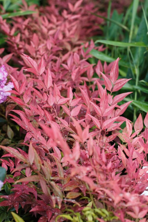 Nandina domestica 'Obsessed' heeft matig water nodig. Het is belangrijk om de grond te controleren voordat er water wordt gegeven. Voel of de bovenste laag droog is. Geef liever rijkelijk water wanneer de plant dorstig is, in plaats van dagelijks een beetje. Dit zorgt ervoor dat de wortels dieper groeien. De beste tijd om water te geven is vroeg in de ochtend of laat in de avond, om verdamping te minimaliseren. Opgevangen regenwater kan ook worden gebruikt. Zorg ervoor dat overtollig water goed kan weglopen, zowel in de volle grond als in potten. Druppelslangen werken pas optimaal als de plant goed geworteld is. Nandina domestica 'Obsessed' is redelijk droogtebestendig, maar regelmatig water geven blijft belangrijk.