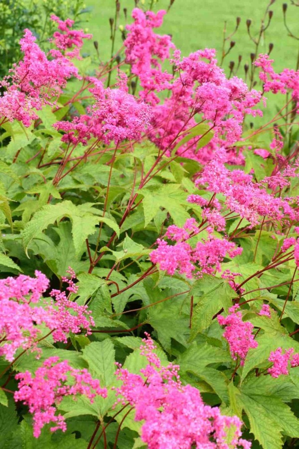 De Filipendula purpurea, ook wel bekend als moerasspirea, is een opvallende plant met prachtige roze pluimen die bloeien van juni tot augustus. Deze vaste plant is ideaal voor vochtige grond en heeft een opgaande groeiwijze, waardoor hij perfect is voor borders en groepsbeplanting. Ondanks zijn sierlijke uiterlijk is de Filipendula purpurea onderhoudsvriendelijk en kan hij goed tegen koude temperaturen, tot wel -28,9°C. Deze plant gedijt het beste in de zon en op goed doorlatende grond, en met ongeveer negen planten per vierkante meter creëert hij een indrukwekkend kleurenspektakel in de tuin.