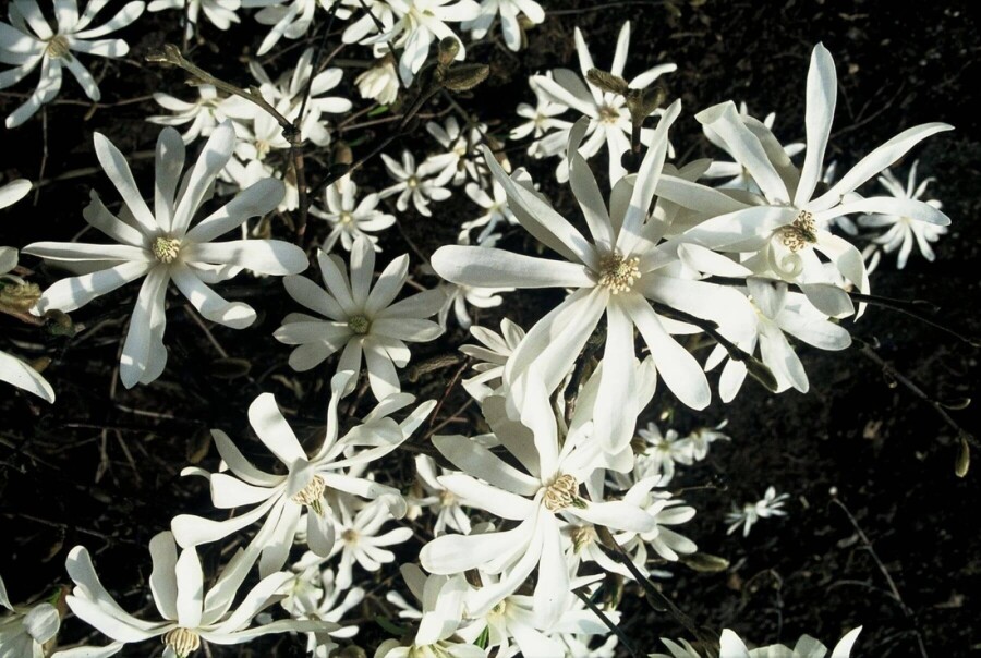 De Stermagnolia, bekend als Magnolia stellata, staat bekend om zijn prachtige witte bloemen die vroeg in het voorjaar bloeien. Deze heester is onderhoudsarm en kan goed gedijen op verschillende grondsoorten, zolang de bodem goed doorlatend is. Ondanks dat de plant niet groenblijvend is, biedt hij een indrukwekkende bloei in maart en april, wat hem een populaire keuze maakt voor zowel borders als solitaire aanplantingen.