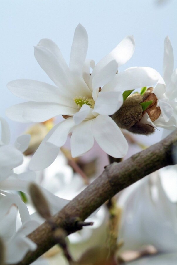 • De bast van de Magnolia stellata is grijsbruin van kleur en de takken zijn stevig en rechtopstaand.