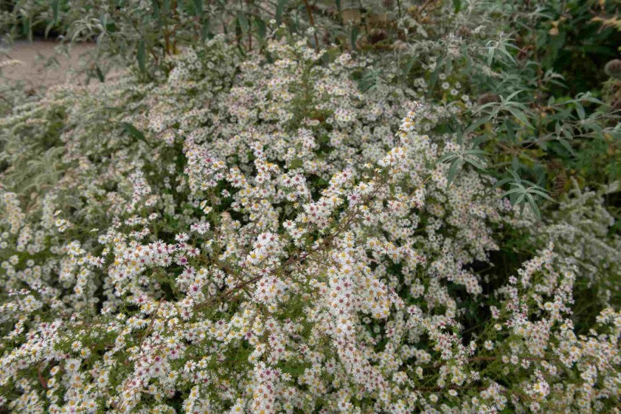 Aster pringlei 'Monte Cassino' är känd för sina rikliga vita blommor som blommar från augusti till oktober. Denna växt lockar insekter och är lättskött, vilket gör den idealisk för både rabatter och gruppplanteringar. Med ett krypande och spridande växtsätt trivs den bäst i sol eller halvskugga och klarar temperaturer ner till -23,3°C.
