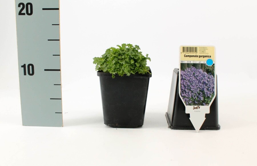 Campanula garganica 'Major', mer känd som italiensk klocka, är en charmig och lättodlad perenn som blommar rikligt under sommarmånaderna. Denna art kännetecknas av sitt krypande, utbredda växtsätt och intensivt blå blommor som skapar en härlig färgklick i trädgården. Italiensk klocka är en utmärkt marktäckare och fungerar lika bra i krukor som i rabatter och kantplanteringar.