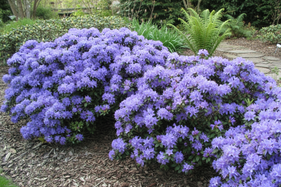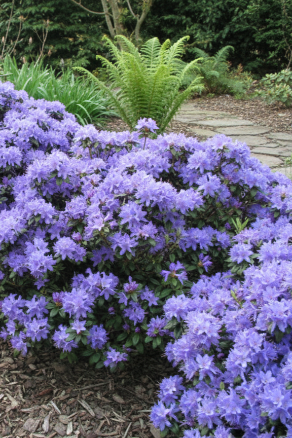 Rhododendron 'Blue Tit' är känd för sina vackra blå och lila blommor som blommar i april och maj. Denna buske är vintergrön och kräver lite underhåll, vilket gör den idealisk för både soliga och halvskuggiga platser. Med sitt buskiga och spridande växtsätt passar Rhododendron 'Blue Tit' utmärkt i rabatter, som solitär eller i krukor.